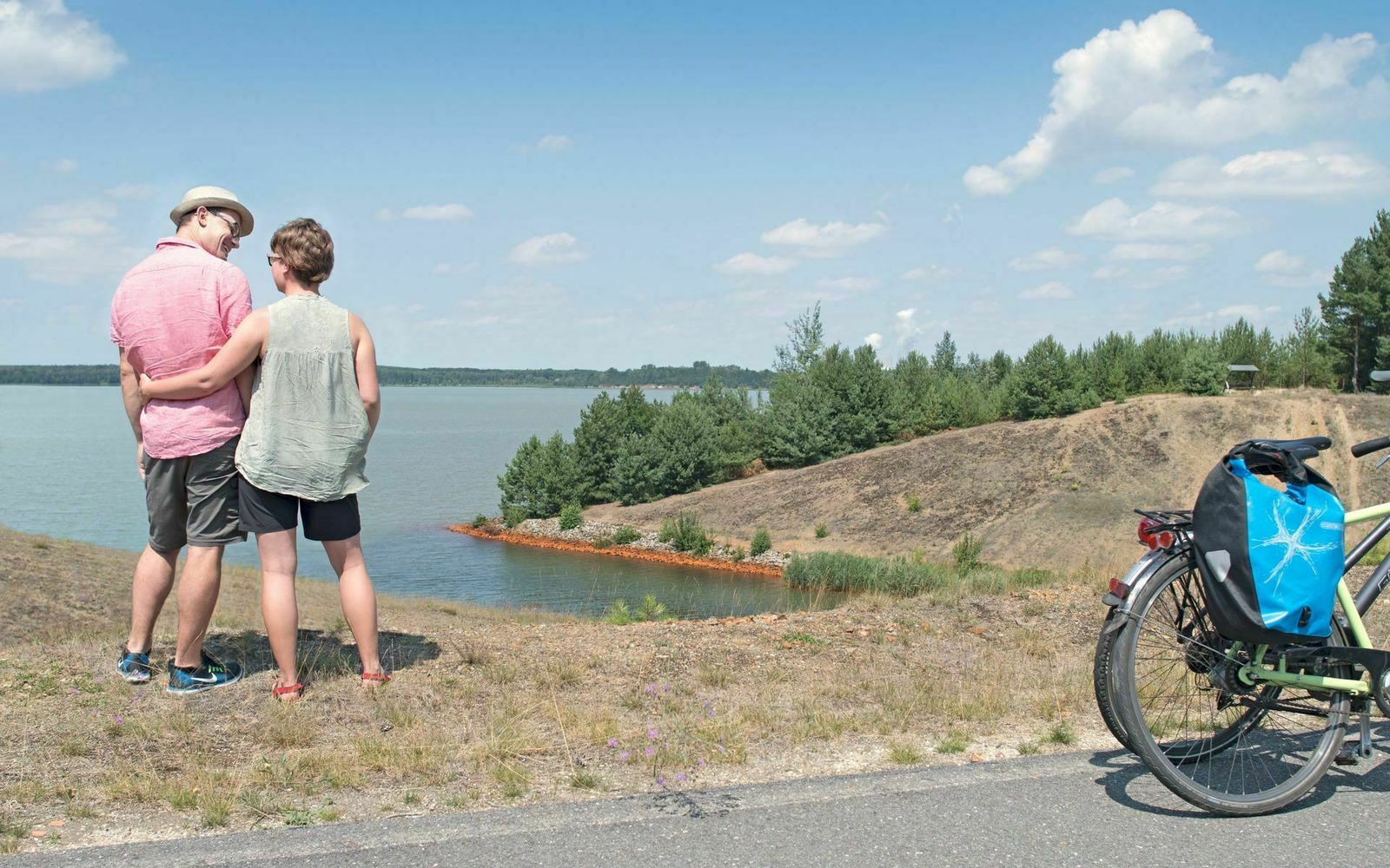 Dva cyklisté pozorující jezero Bernsteinsee, foto: Nada Quenzel