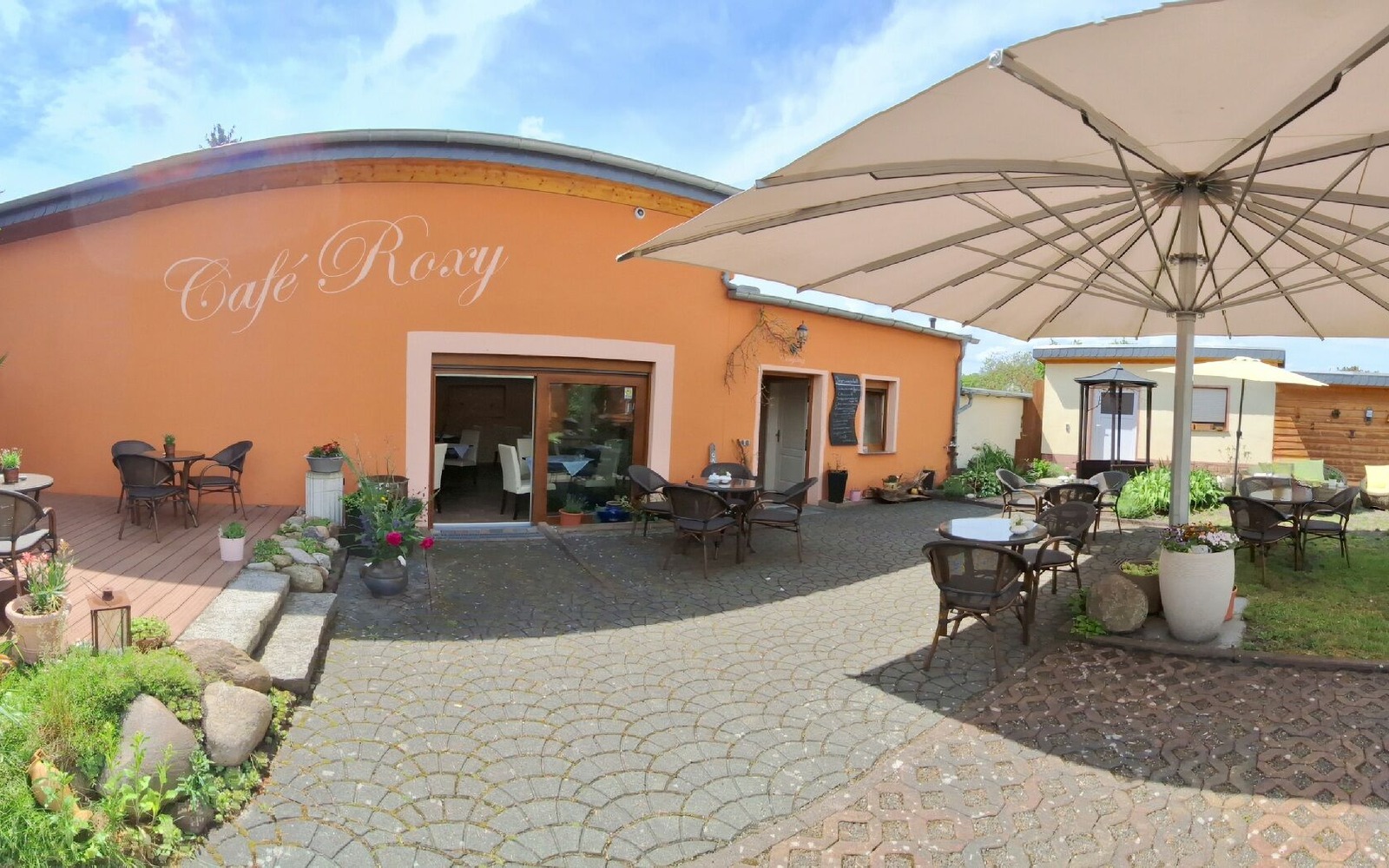 Ein wunderschöner Garten mit einer Sommerküche und einer Spielecke für die Kleinen lädt zum verweilen ein. Immer neue Torten und Kuchen entstehen täglich aus heimischen Zutaten.Gern kann man hier eine Feier für bis zu 40 Personen planen. Alles ist möglich: Brunch(Frühstücks-und Mittagsbuffet), Kaffee und Kuchen und /oder ein Abendbuffet sowie Schnittchen und Häppchen und nach Absprache auch außerhalb unserer Öffnungszeiten.