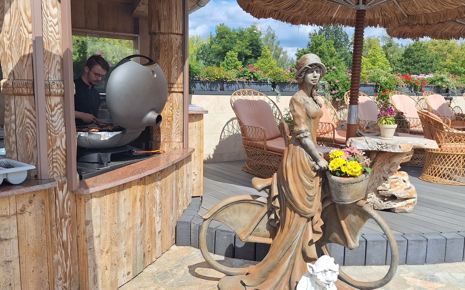 Der gemütliche Biergarten bietet ca. 100 Gästen Platz. Neben einem Selbstbedienungsbereich erwartet Sie ein separater Servicebereich und ein beeindruckender Blick auf den Senftenberger See. Das urige Flair ist auch im Biergarten allgegenwärtig. Zudem laden mehrere Springbrunnen, eine großflächige Beschattung sowie eine moderne große Außen-Grill-Station zum ganztägigen Verweilen ein.