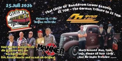 Rockfans aufgepasst! Die Band CC Top bringt die größten Rockhits live auf die Bühne, handgemacht, energiegeladen und nah am Original! Freuen darf man sich auf Klassiker wie "Sharp Dressed Man", "Tush" und viele mehr! Rock, Atmosphäre und gute Stimmung garantiert!