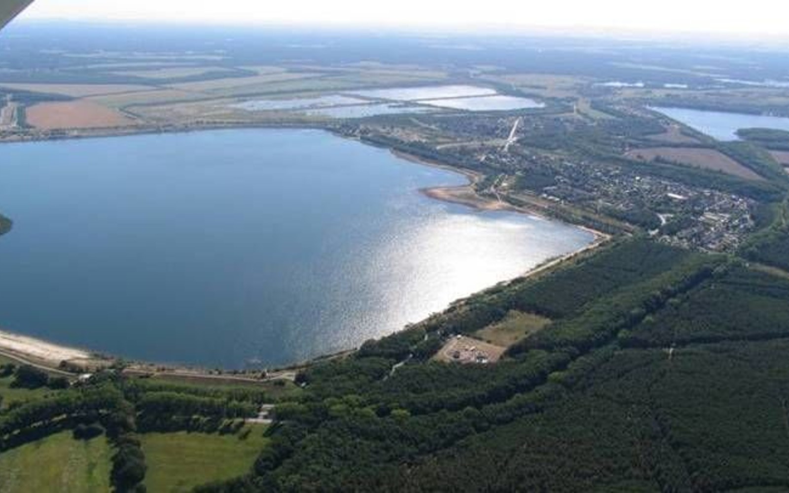 Der Dreiweiberner See entstand durch Flutung des ehemaligen Braunkohletagebaus Dreiweibern.