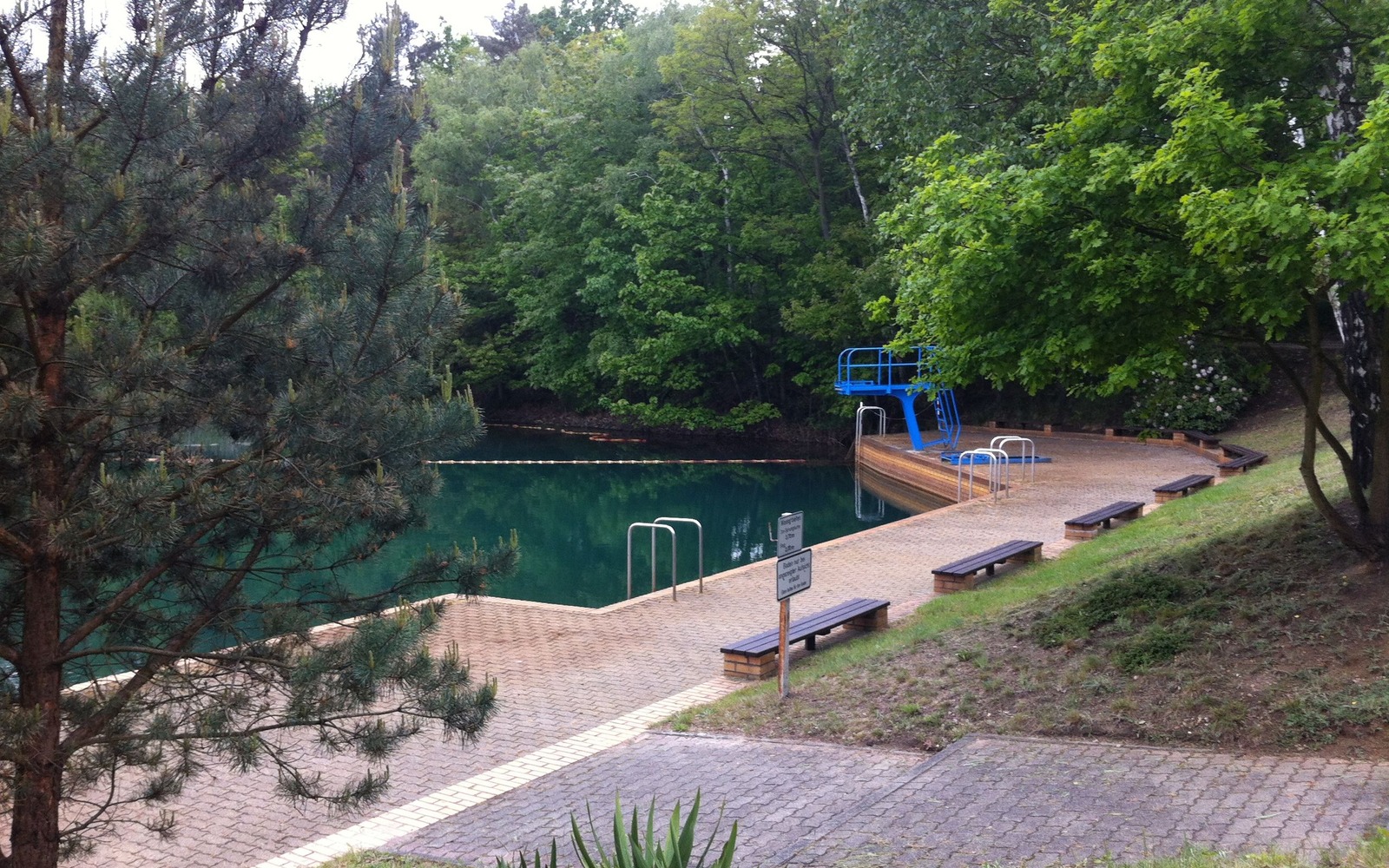 Waldbad Hosena - Plattform mit Bänken, Leitern und Springturm, Foto: Stadt Senftenberg