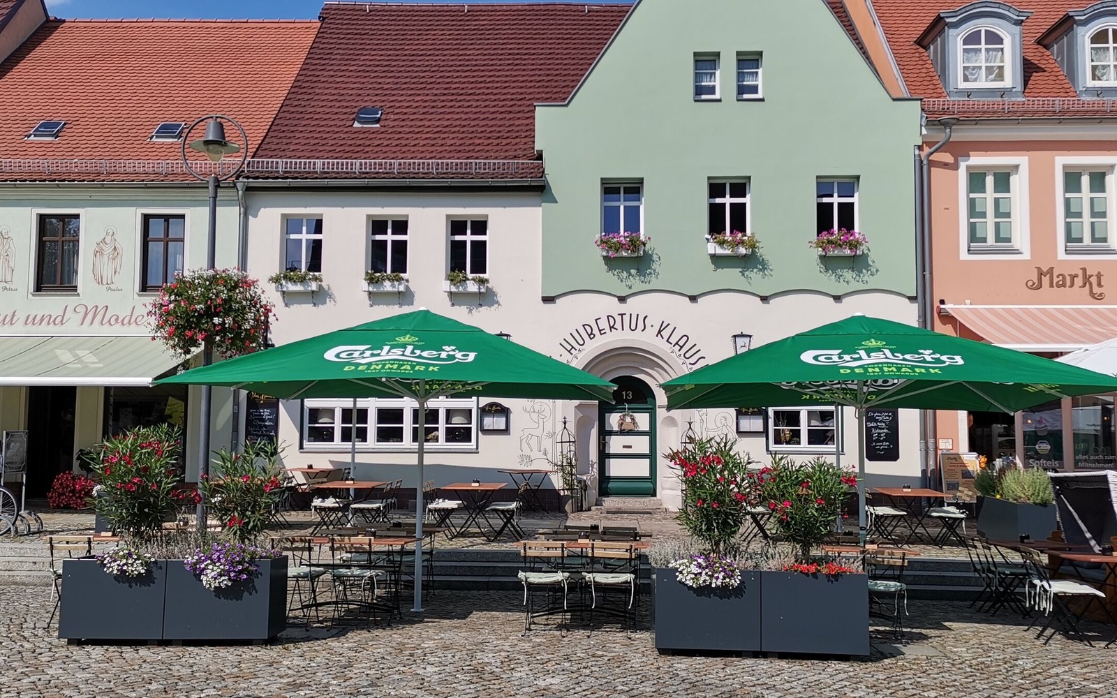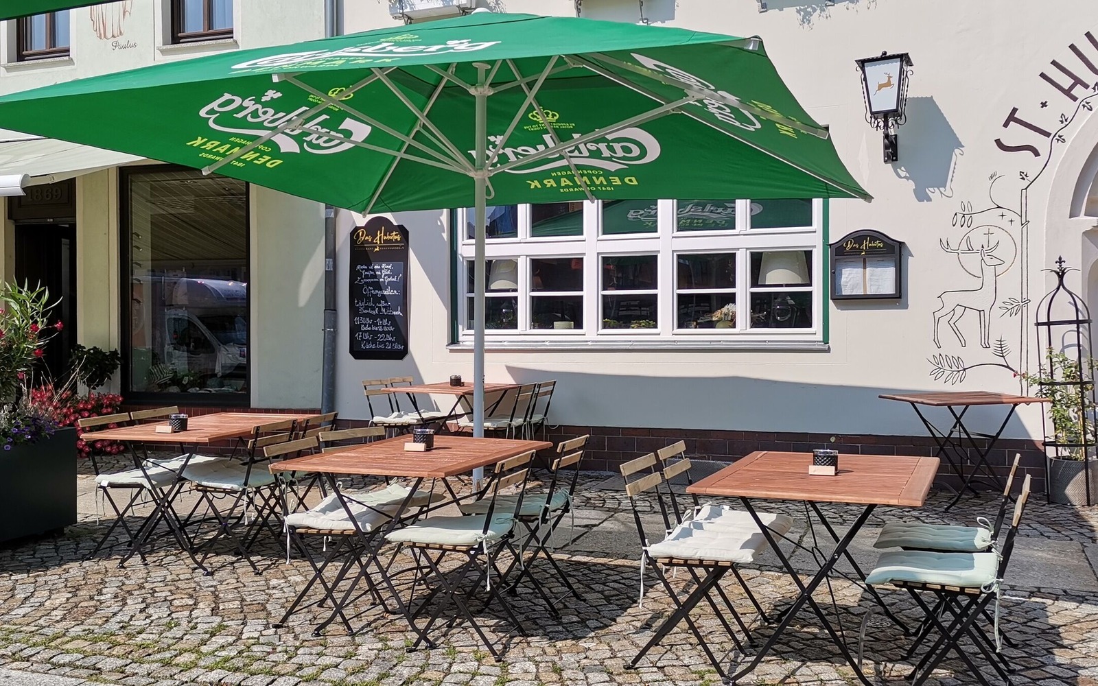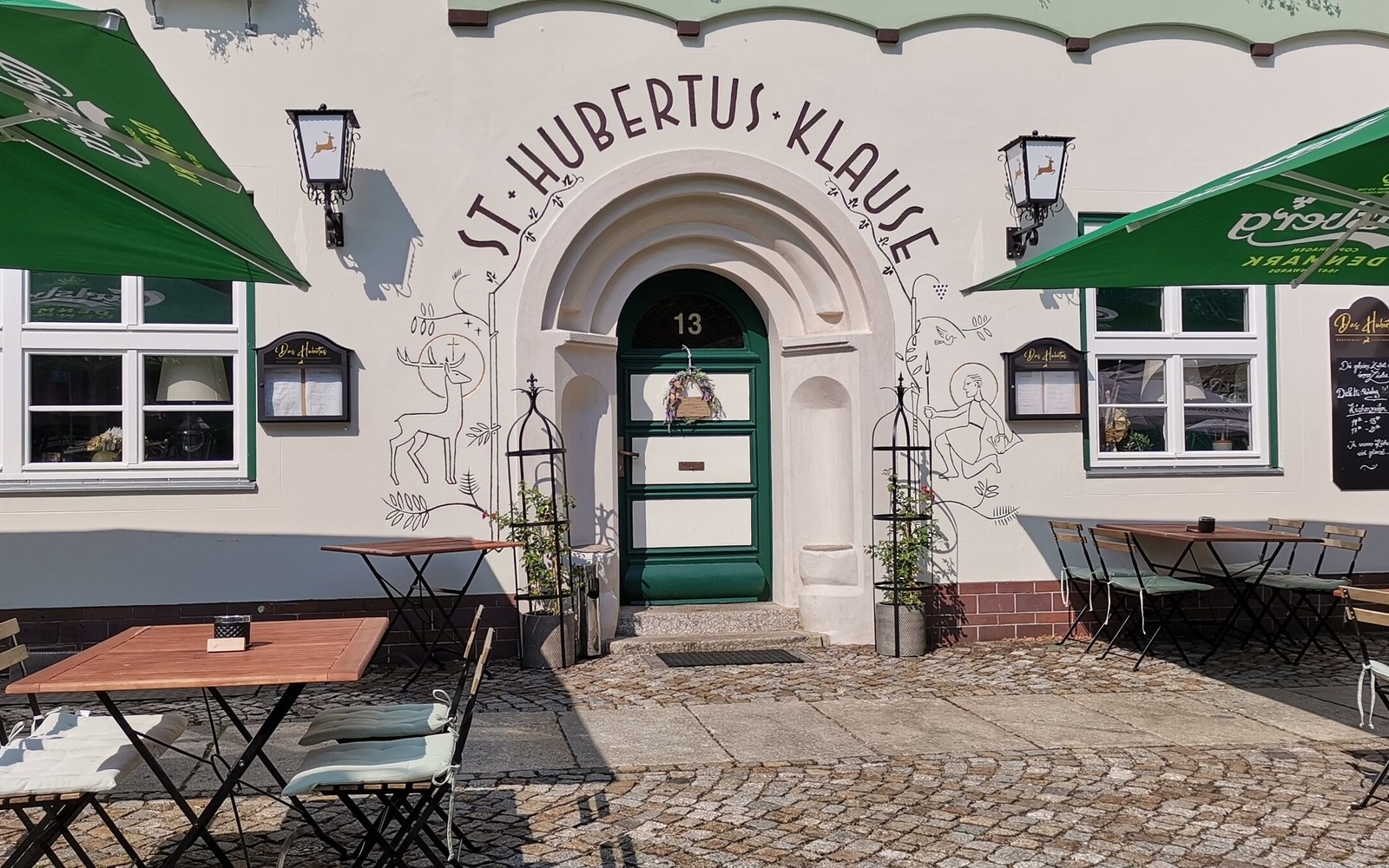 It all began in 1886 with Albert Bittroff's restaurant in the second oldest building on the market square in Senftenberg. In 1932, the restaurant was taken over by Mr Paul Gulben and given the name "St. Hubertus-Klause". With the support of the Senftenberg artist Günter Wendt, the façade graffiti and works of art in the hunting room were created. In 1957, Mr Georg Bsdok bought the inn and ran it successfully until 2021. In 2024, the Bruckmoser family and a great team lovingly restored the inn, salvaged the old treasures and reopened it under the name "Das Hubertus".