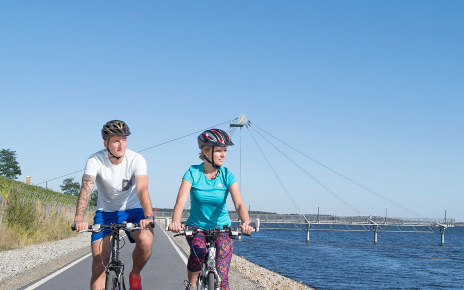 The Lakeland route starts at the harbour in Senftenberg. From there it continues via Reppister Hights to Großräschen, at IBA Terraces. The Victoria Hights is right nearby. From up there, there is a beautiful view over the harbour and Lake Großräschen. The tour continues along Lake Sedlitz and Lake Partwitz. The beach at Partwitz Lake invites you for a short break and a swim. The route runs through the villages of Bluno and Sabrodt before reaching Lake Spreetal. Once there, it is worth visiting Terra Nova, the post-mining landscape with a pony farm and wild animal breeding.