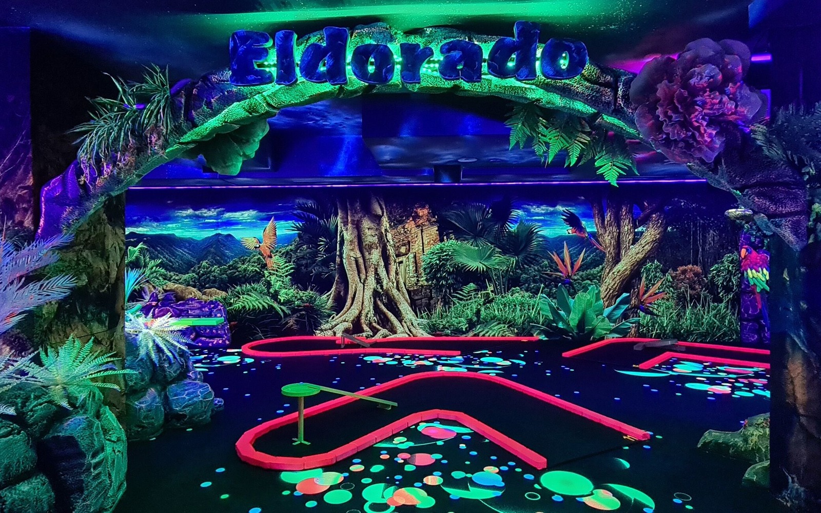 Black light effects bring the rooms to life and allow a journey into another world of mini golf.