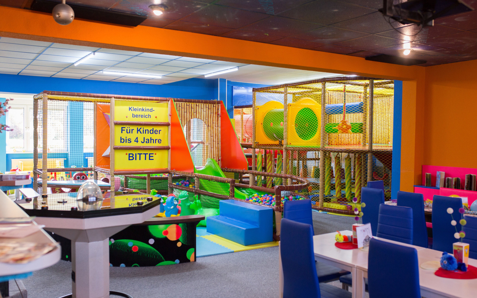 This indoor playground is right next door to the JumpUp trampoline park. Tobix welcomes the smallest visitors, aged 0 to 6 years. From the ball pool to the toddler climbing area, all the way to the play corner and play equipment, here children can let off steam and enjoy an exciting day with their friends, siblings, parents or grandparents. The table football and air hockey are popular with older kids.