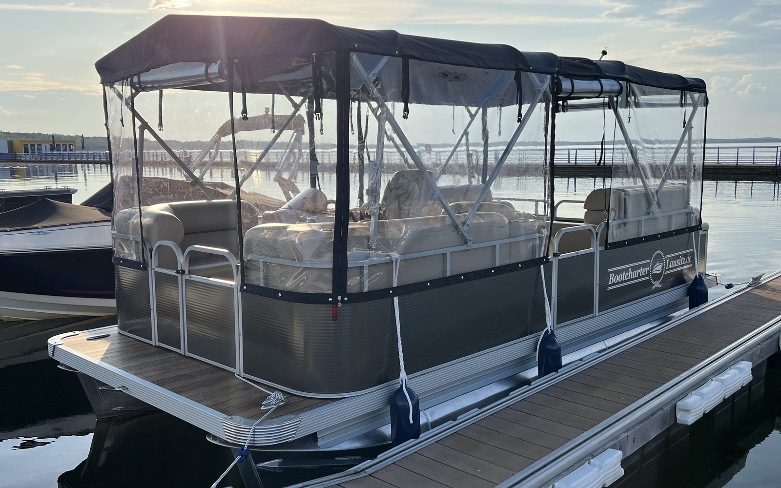 Licence-free pontoon boat "STAR Cruiser", Foto: Bootcharter Lausitz, Lizenz: Bootcharter Lausitz
