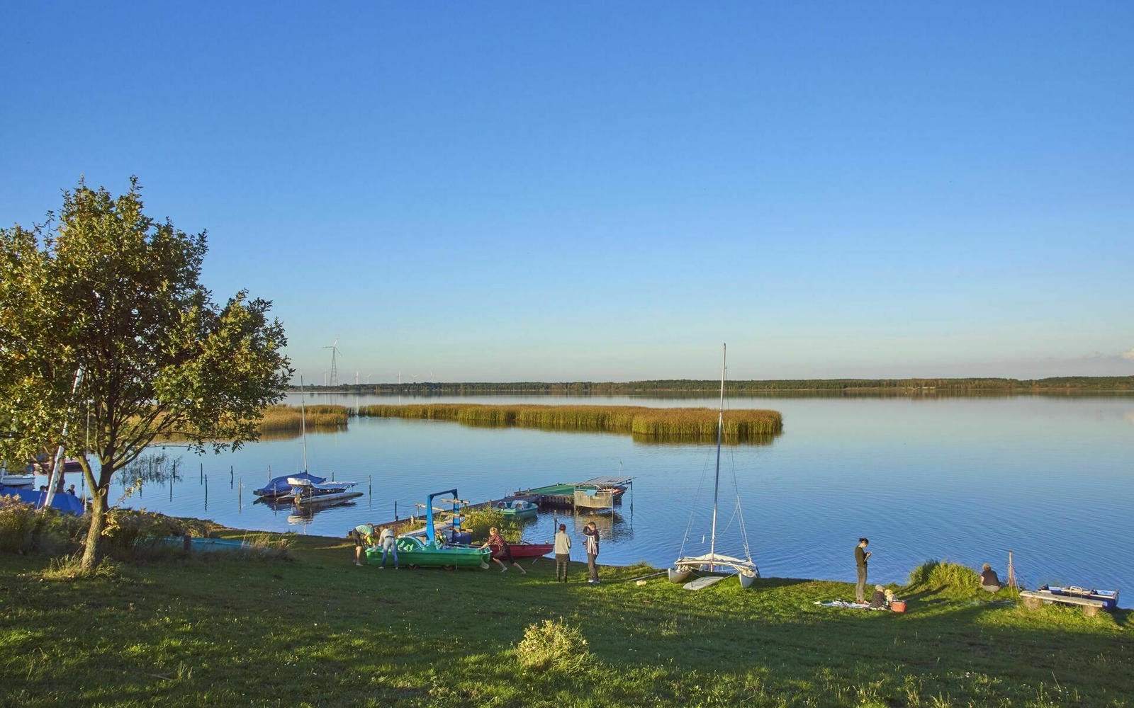 Adjacent to the car park is the area of the camping and caravan site "Camping Gräbendorfer See". Pedal boats and stand-up paddling boards can also be rented here.