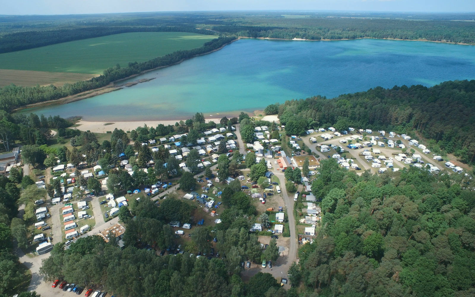 Lake Grünewalde has two swimming beaches and two nudist beaches, in Grünewalde and Gorden, several idyllic swimming coves and a separate beach for visitors with dogs. The bathing water quality in Lake Grünewalde has been certified as excellent (since 2014, based on EU bathing water quality standards). The beaches are not supervised.